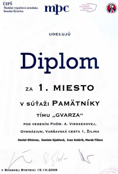 Úvodná stránka>Víťazstvo tímu GVARZA v Celoslovenskej súťaži Pamätníky SNP